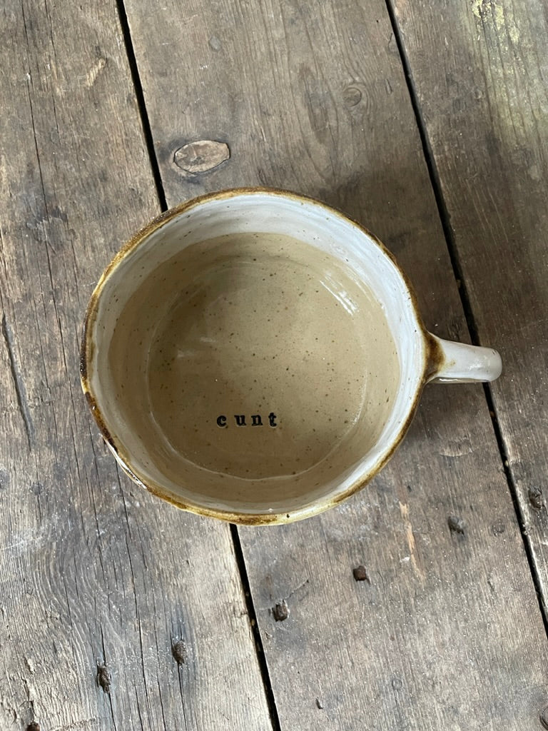 Every Tuesday I sell my bestselling original 'cunt mug' here on my online shop. These are pre-made mugs and will appear randomly throughout the day so if you don't see one, keep checking back.