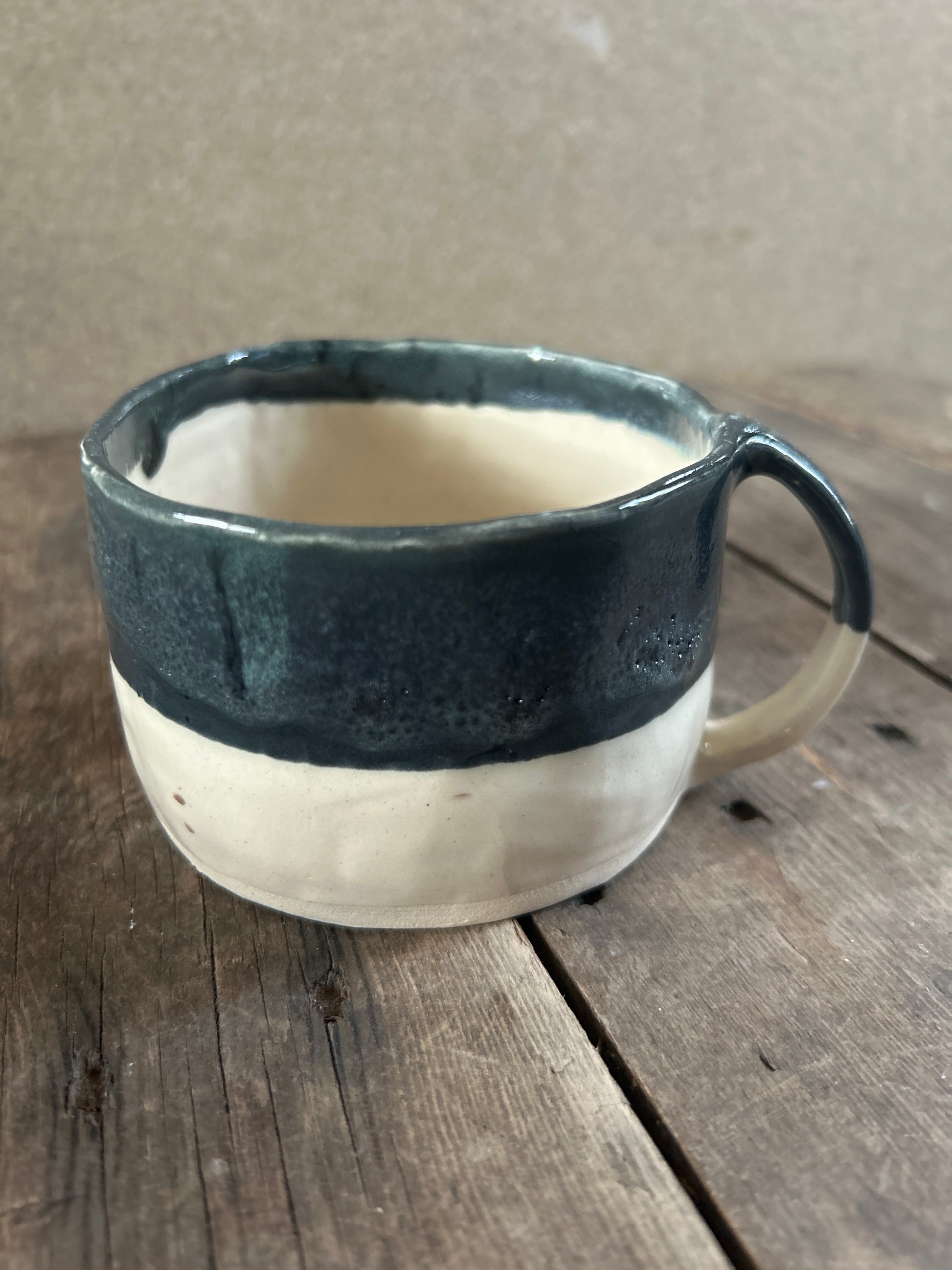 All of my stoneware pieces are carefully constructed by hand. This mug has been made by combining throwing and the 'pinch' method. Each one is shaped and finished by me. They are full of character including finger marks, wobbly edges, glaze splats and drips which add to their charm and rustic feel. Perfectly imperfect.