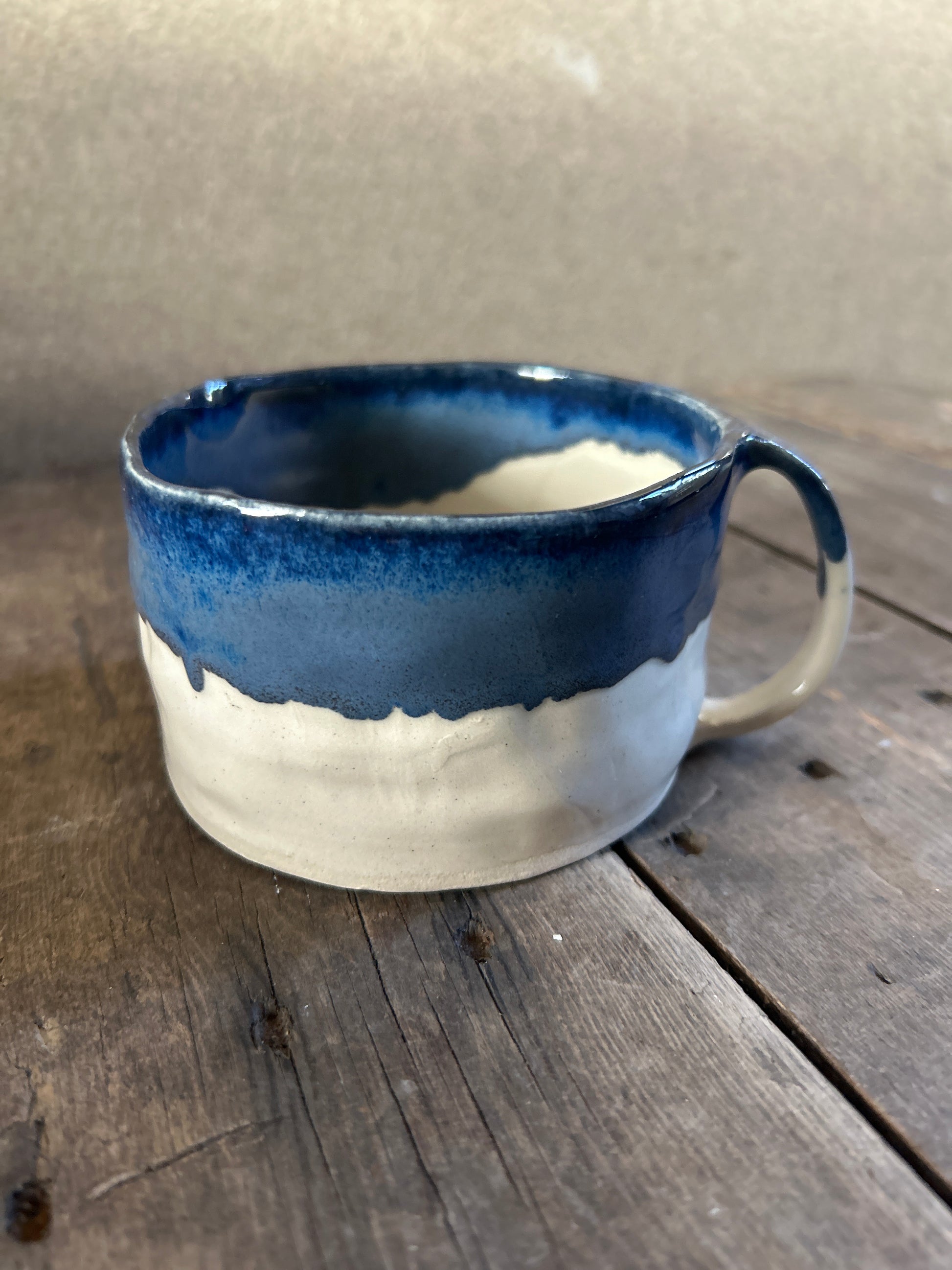All of my stoneware pieces are carefully constructed by hand. This mug has been made by combining throwing and the 'pinch' method. Each one is shaped and finished by me. They are full of character including finger marks, wobbly edges, glaze splats and drips which add to their charm and rustic feel. Perfectly imperfect.