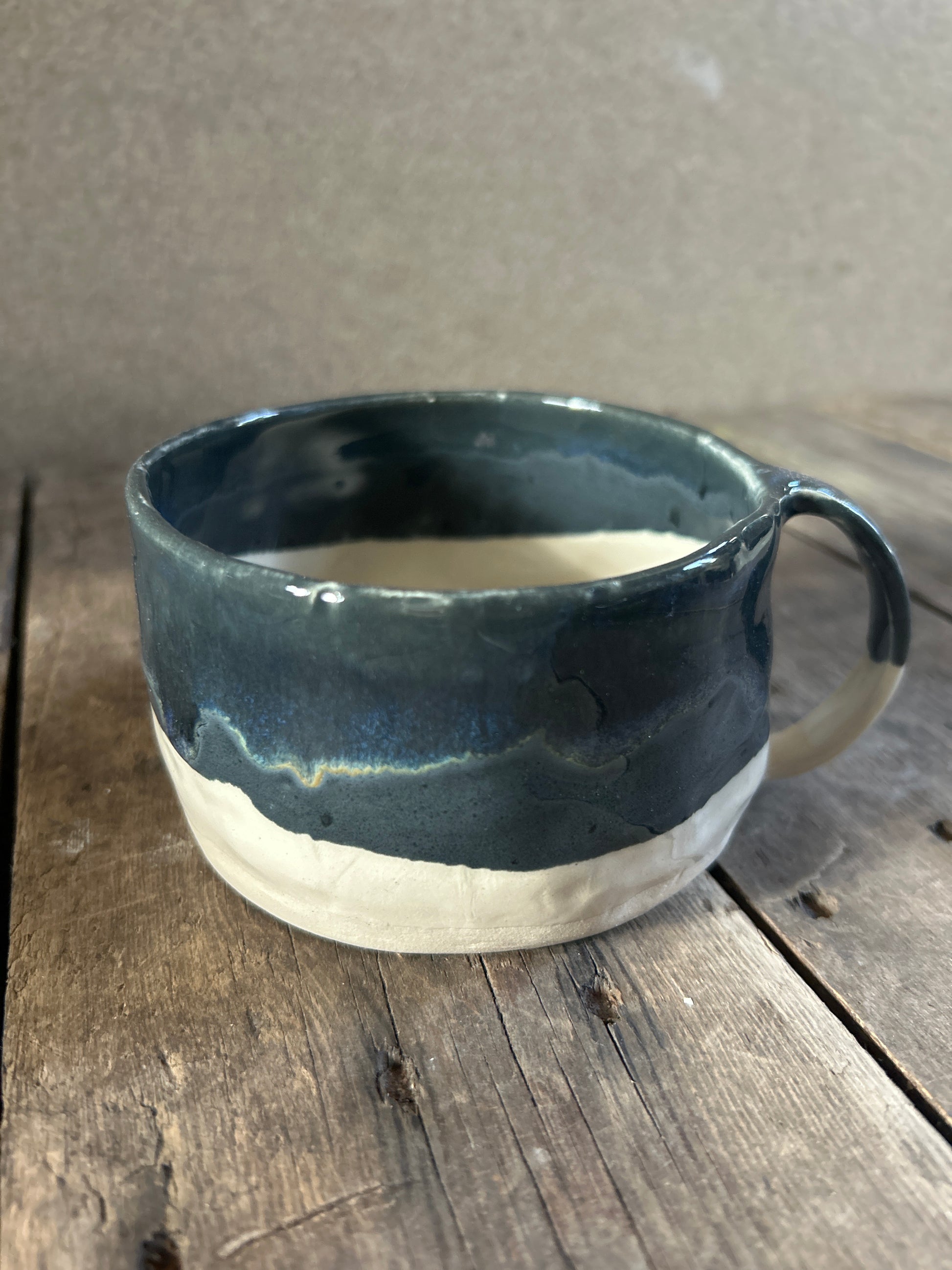 All of my stoneware pieces are carefully constructed by hand. This mug has been made by combining throwing and the 'pinch' method. Each one is shaped and finished by me. They are full of character including finger marks, wobbly edges, glaze splats and drips which add to their charm and rustic feel. Perfectly imperfect.