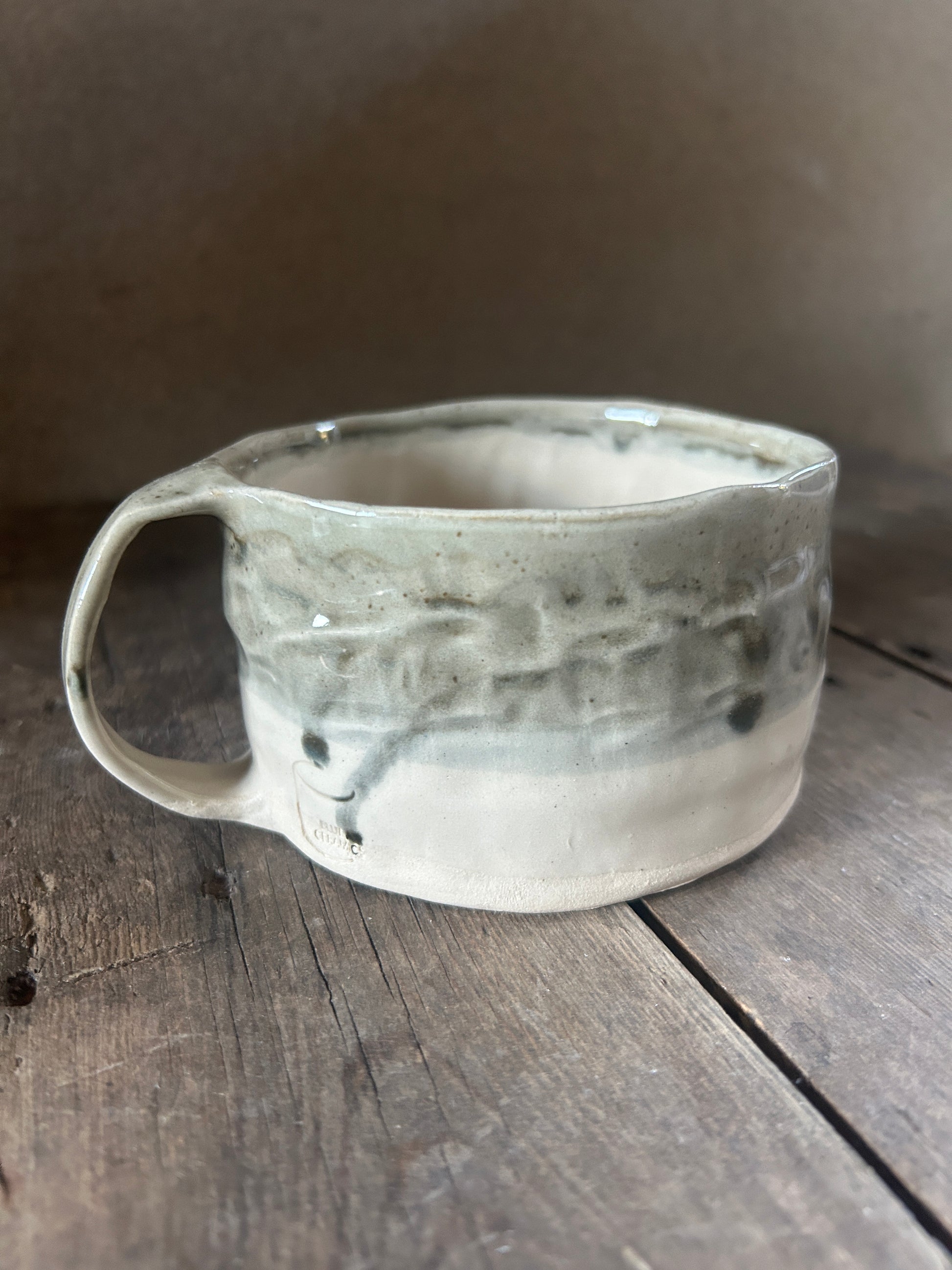 All of my stoneware pieces are carefully constructed by hand. This mug has been made by combining throwing and the 'pinch' method. Each one is shaped and finished by me. They are full of character including finger marks, wobbly edges, glaze splats and drips which add to their charm and rustic feel. Perfectly imperfect.