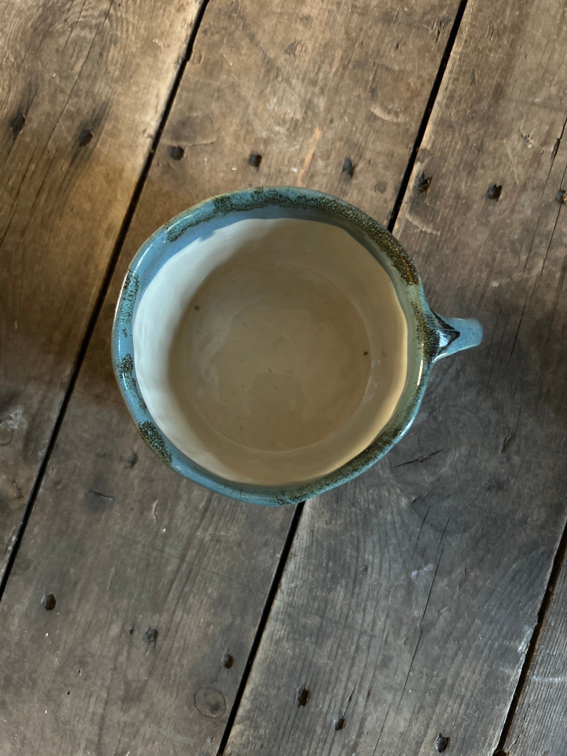 All of my stoneware pieces are carefully constructed by hand. This mug has been made by combining throwing and the 'pinch' method. Each one is shaped and finished by me. They are full of character including finger marks, wobbly edges, glaze splats and drips which add to their charm and rustic feel. Perfectly imperfect.