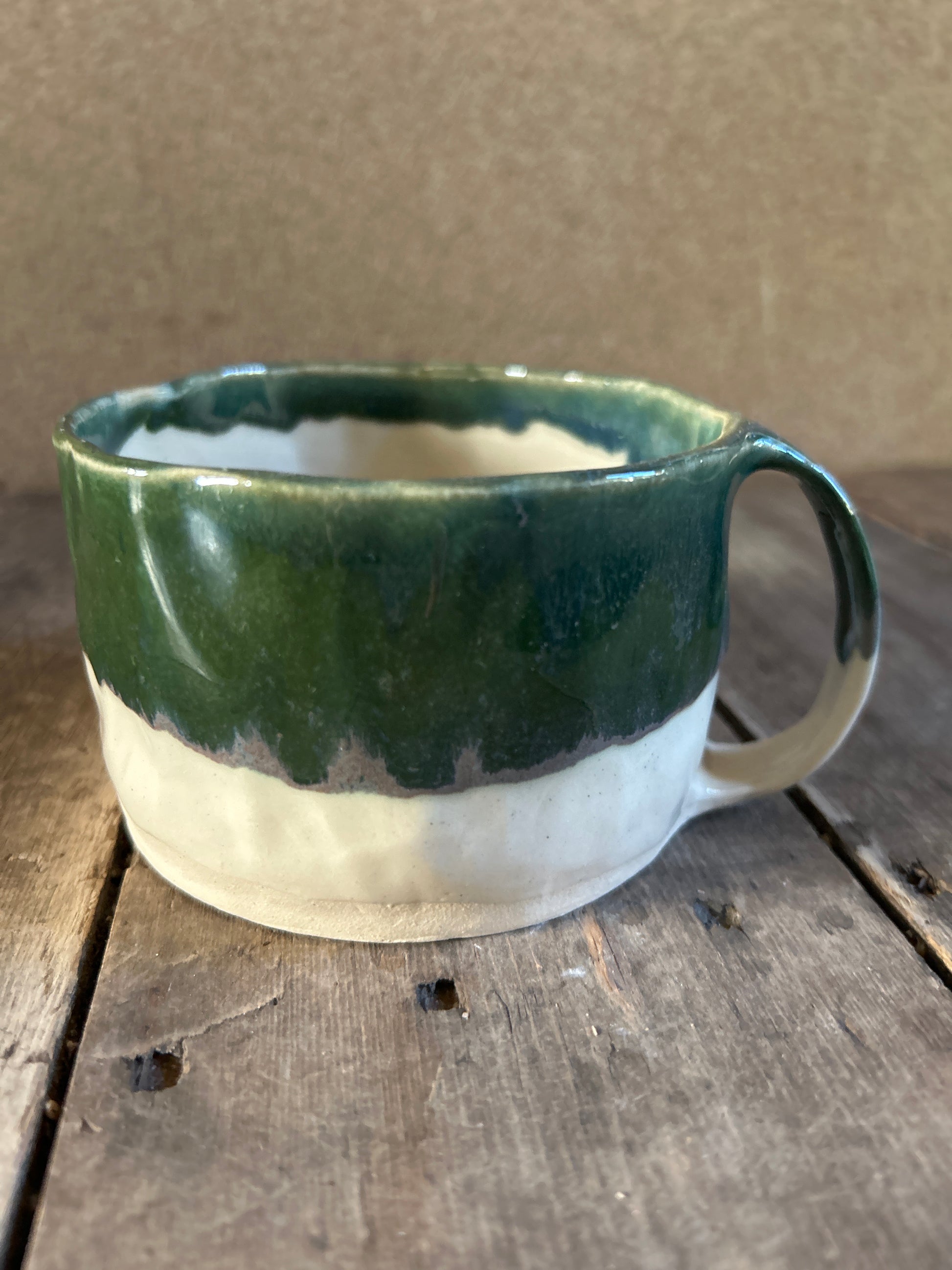 All of my stoneware pieces are carefully constructed by hand. This mug has been made by combining throwing and the 'pinch' method. Each one is shaped and finished by me. They are full of character including finger marks, wobbly edges, glaze splats and drips which add to their charm and rustic feel. Perfectly imperfect.